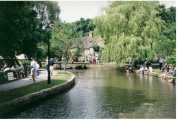 Then we took a long, leisurely drive down through the Cotswolds [photo right], especially the beautiful towns of Bourton-on-the-Water, Stow-on-the-Wold, and the Slaughters (Upper and Lower). It's hard to describe the Cotswolds -- they're small, lovely towns with a distinct architecture -- stone and with gabled roofs ot stone or tile, and often with creeks or rivers running through the center of town. Lots of tourists, of course... Like us.... We had a pub lunch (if you like cheese, you have to try the ploughman's lunch: it's basically a wonderful slab of tasty cheese, fresh bread and salad).