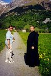 We hadn't been sure what train we would get from Zurich, and had left word we would arrive at 2 or 3p.m. and would take a cab from the train station. But when we got there (fortunately on the 2 p.m. train), Father Thomas was there to meet us and drive us to the monastery. The obligatory "hi, we're here!" photos done, we had a chance to sit and talk a bit.